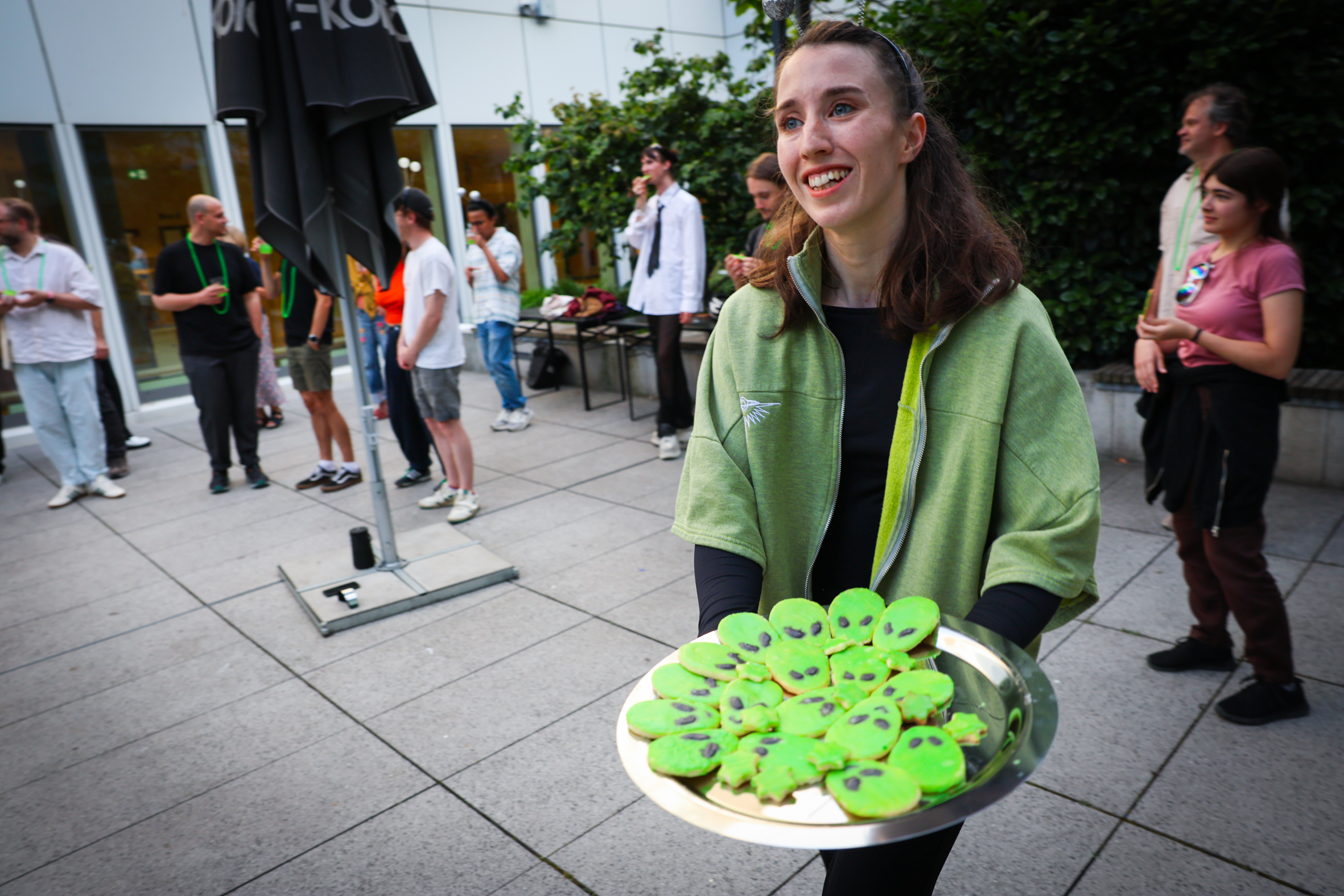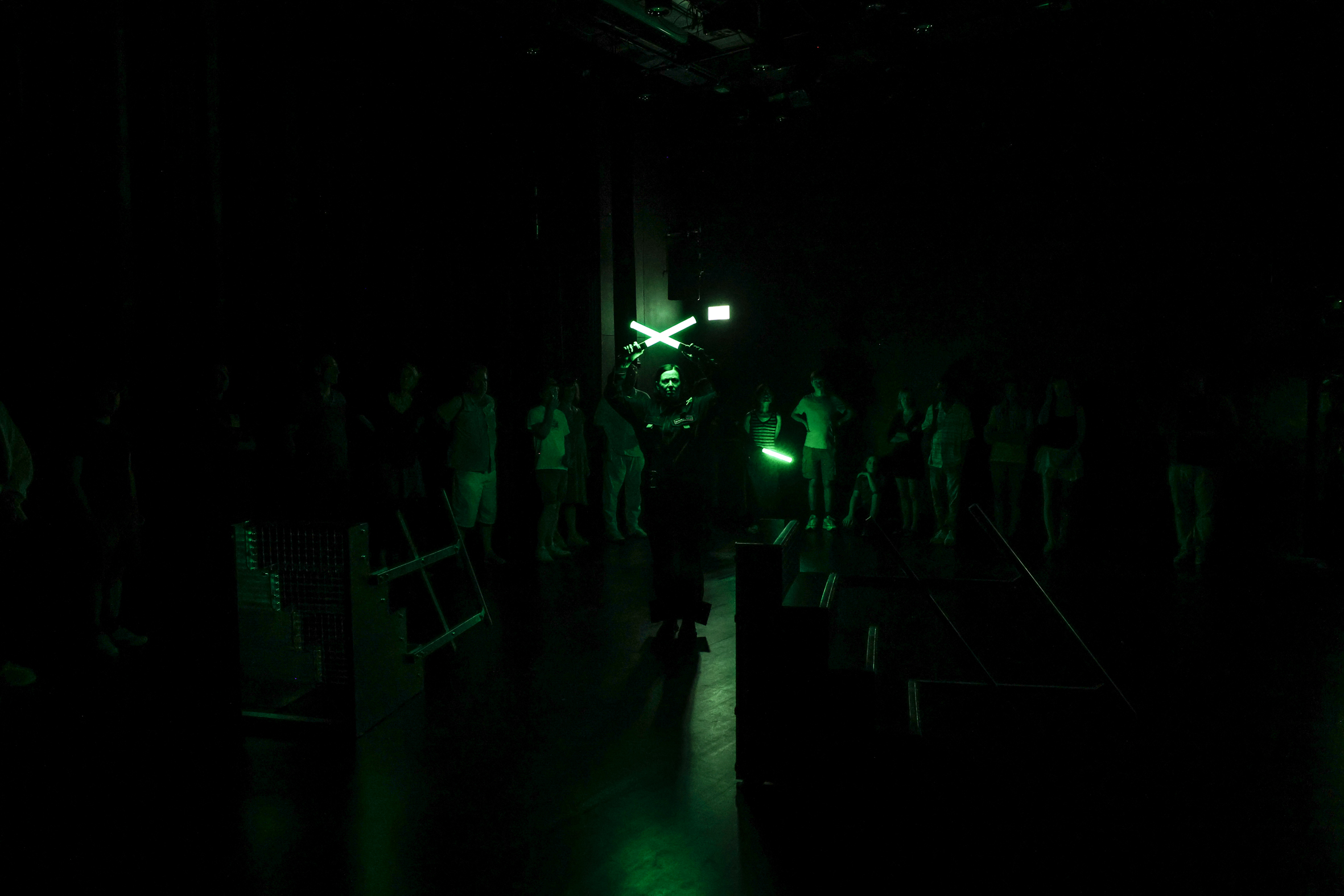 Die Performance beginnt unter freiem Himmel als Vorbereitung auf den Erstkontakt mit einer unbekannten Spezies. Anschließend taucht das Publikum in einen immersiven Raum ein und geht auf eine Reise zwischen Irritation, Erkenntnis und Neugierde. Das Stück ist eine Einladung, die eigene Perspektive zu überprüfen. Sind wir bereit, in den Spiegel zu schauen, um das Eigene im Fremden zu finden?