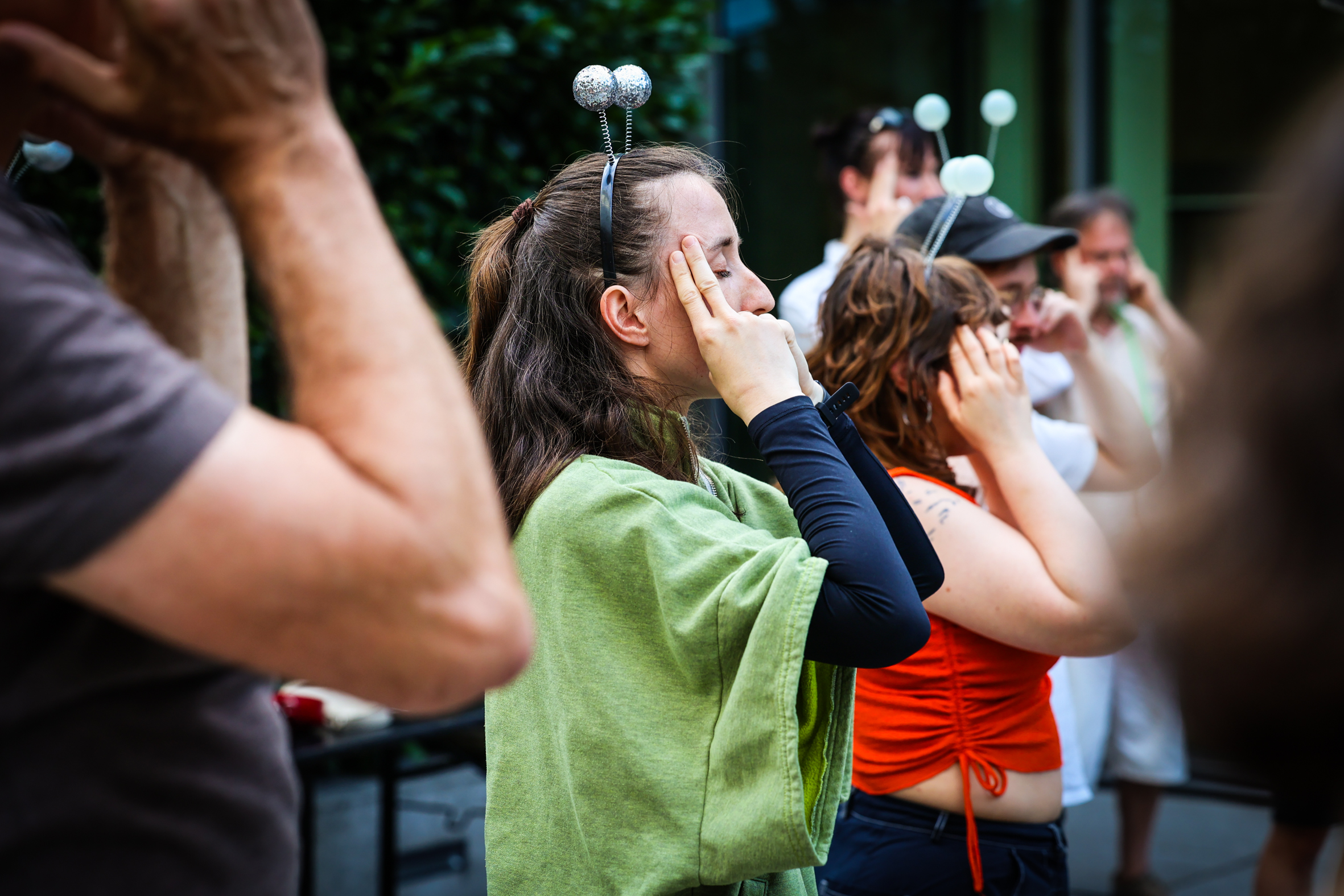 Außerirdische sind Stars der Popkultur. In der Wissenschaft gelten sie als Inbegriff maximaler Fremdheit. Das Choreografie-Duo Kathrin Spaniol und Morgan Nardi erforscht mit „Was-wäre-wenn-Szenarien“ die Frage, wie wir mit dem Unbekannten umgehen. Was passiert, wenn Menschen auf ein nicht-menschliches Gegenüber treffen? Wer spricht für die Menschheit? Die Vereinten Nationen? Tech-Milliardäre?